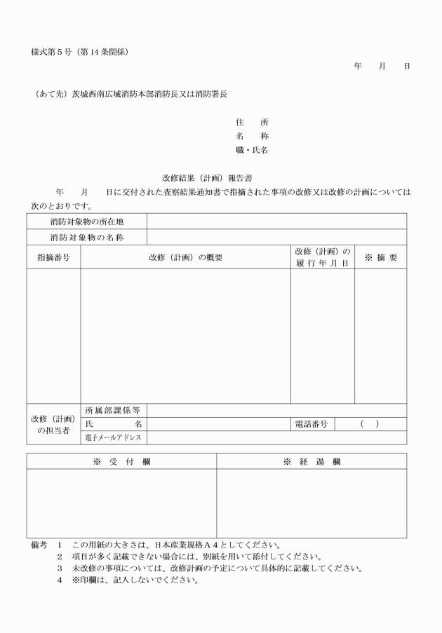 4 改修計画日が、社会通念上又は火災予防上妥当と認められない場合には、受付時に、関係者に対し必要な指導を行うものとする。
