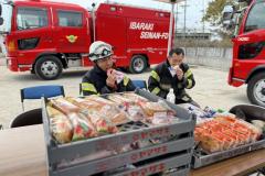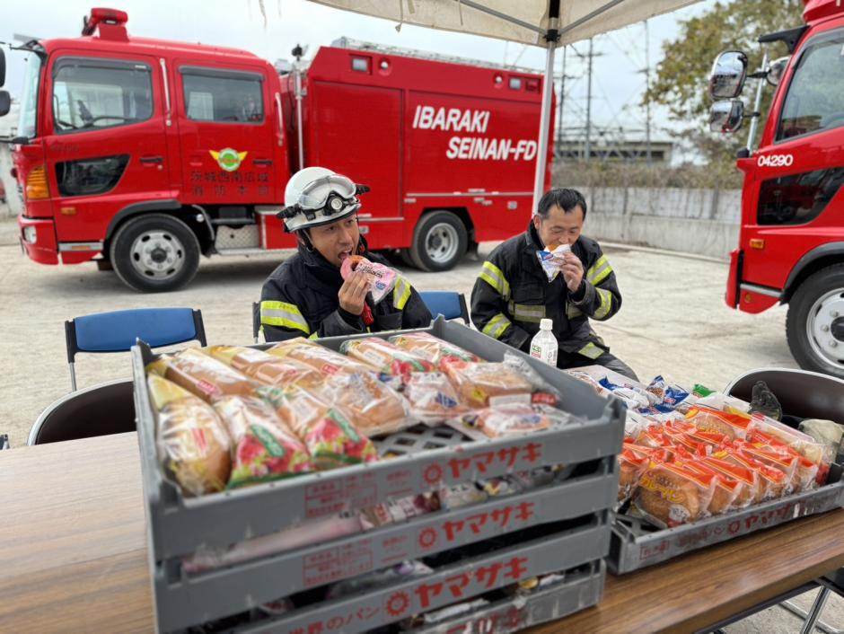 令和7年11月23日 坂東市幸田新田地内で発生しました大規模な工場火災の際、「山崎製パン株式会社古河工場」様より、活動隊員へ温かいご支援(パン)を頂戴いたしました。